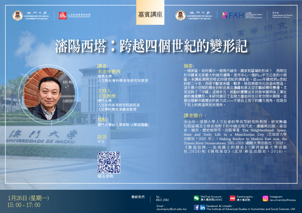 高研院 · 人文學院歷史系 | 嘉賓講座: 【瀋陽西塔:跨越四個世紀的變形記】