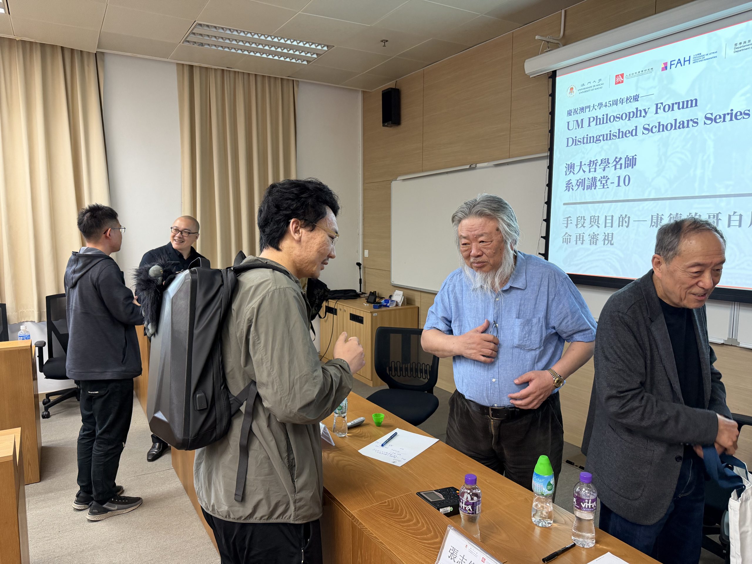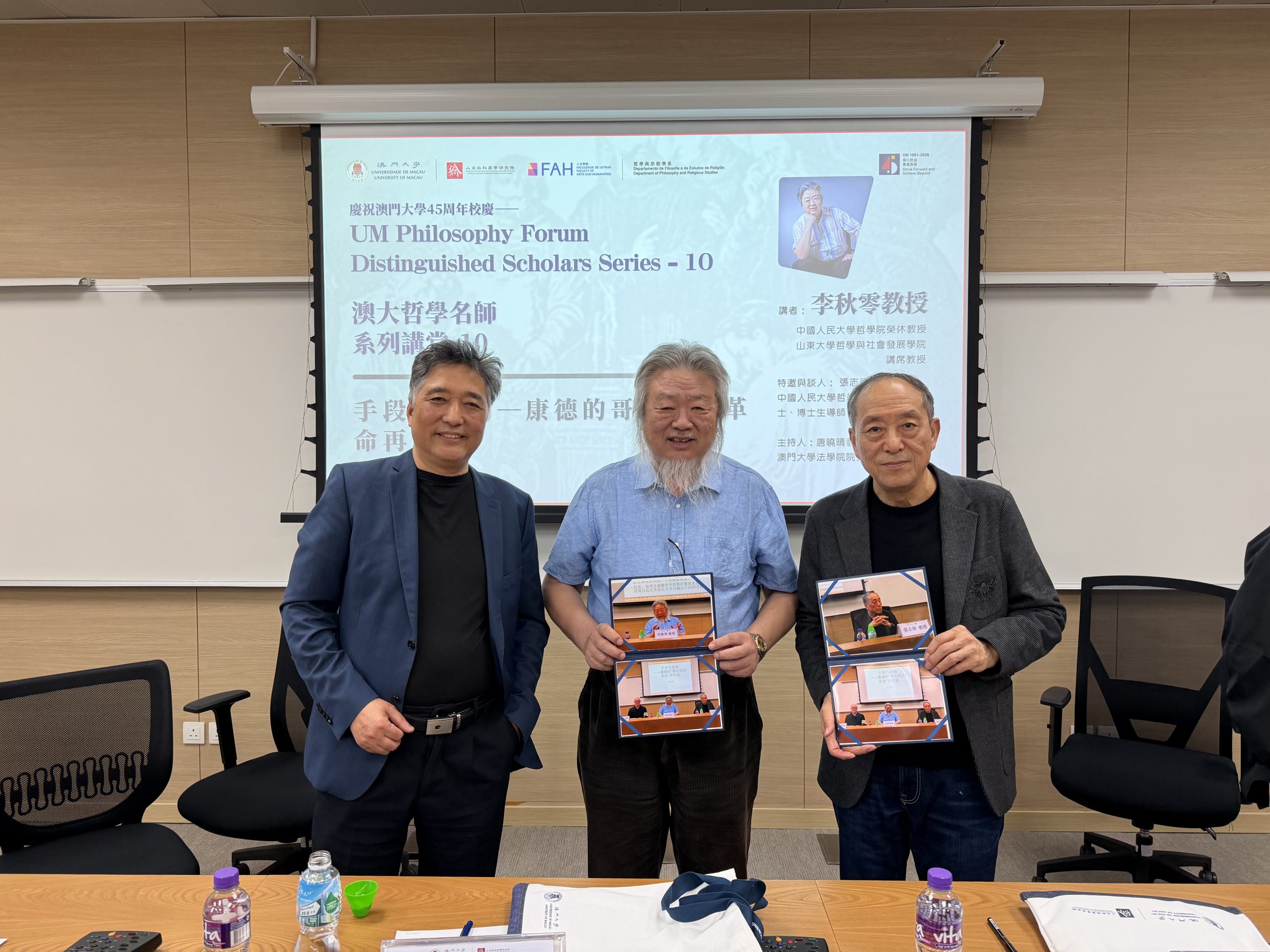 UM Philosophy Forum Distinguished Scholars Series – 10, jointly organized by the Institute of Advanced Studies in Humanities and Social Sciences (IAS) and the Department of Philosophy and Religious Studies of the Faculty of Arts and Humanities (FAH) at the University of Macau, was successfully held on the afternoon of 13 March 2026 at the Humanities and Social Sciences Building (E21A-G049). The lecture featured Professor Qiuling Li, Emeritus Professor of the School of Philosophy at Renmin University of China and Chair Professor of the School of Philosophy and Social Development at Shandong University, as the guest speaker. The session was moderated by Professor Io Cheng Tong, Dean and Professor of the Faculty of Law at the University of Macau, with Professor Zhiwei Zhang, Professor, PhD Supervisor of the School of Philosophy at Renmin University of China, serving as the discussant.